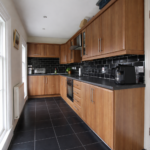 • Modern wood-effect kitchen with oven, hob & extractor