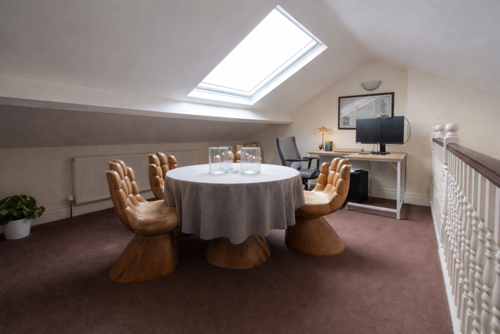 Mezzanine level ideal for dining or workspace