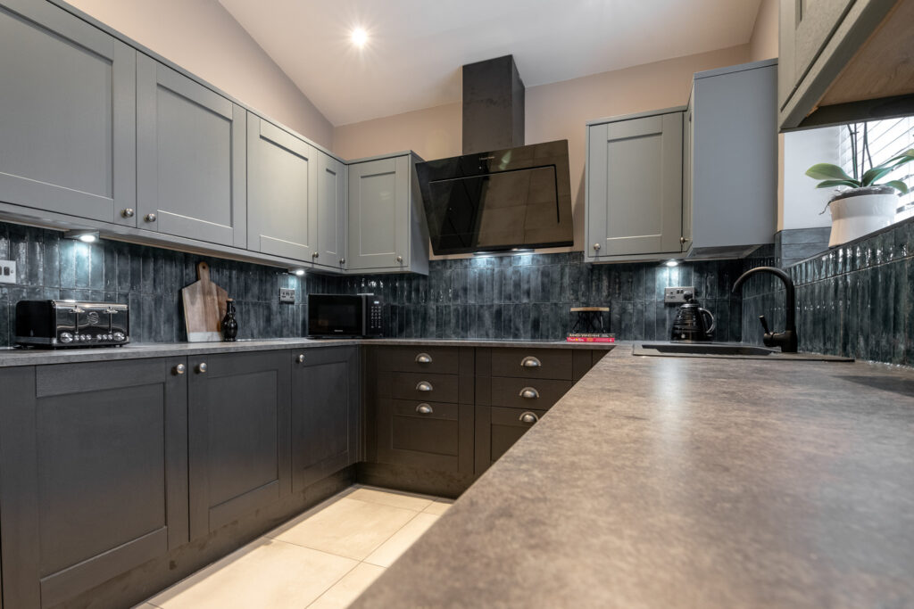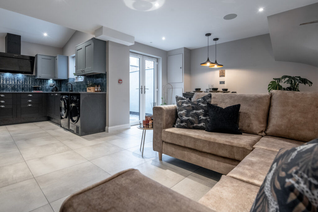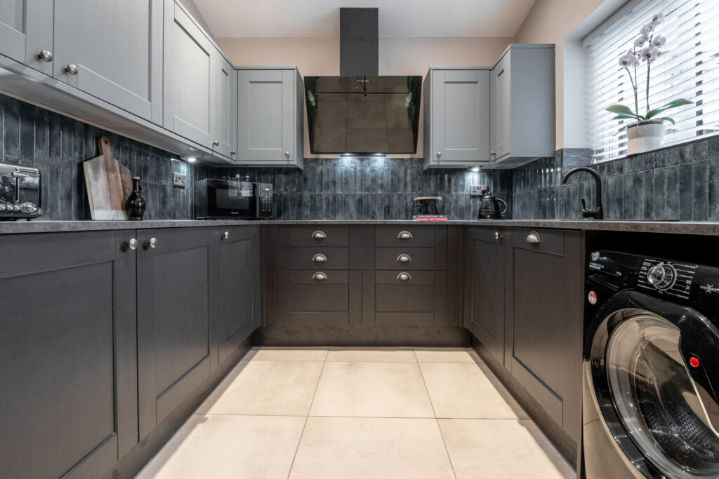 Modern Kitchen & Appliances – Includes American-style fridge/freezer, dishwasher, washing machine, tumble dryer, and plenty of storage.