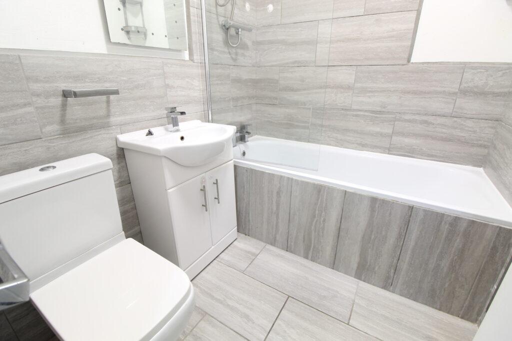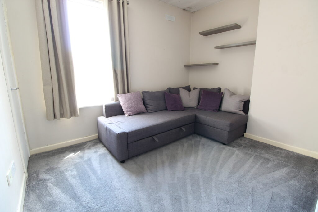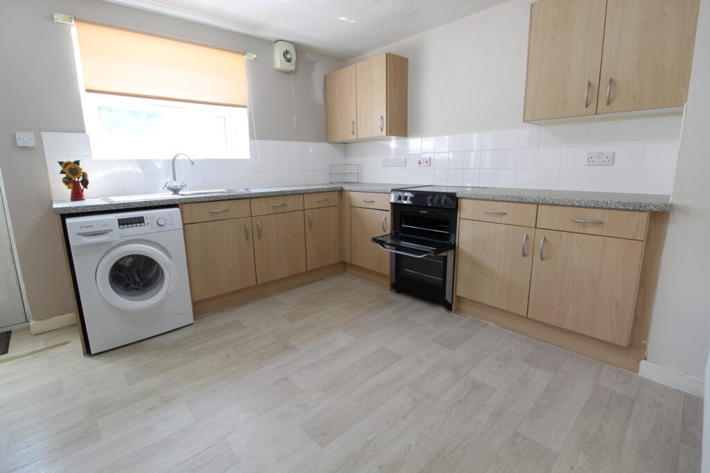 The property is entered through a bright hallway and provides spacious accommodation downstairs. There is a modern downstairs bathroom with a white suite and thermostatic shower. The kitchen has light wood wall and base units, a free-standing oven, a washing machine, and an under-the-counter fridge/freezer. There is a large lounge with a feature fireplace. Upstairs there are 2 double bedrooms, one room has a freestanding wardrobe and the other a sofa bed. The property has a paved area to the rear and on-street parking.