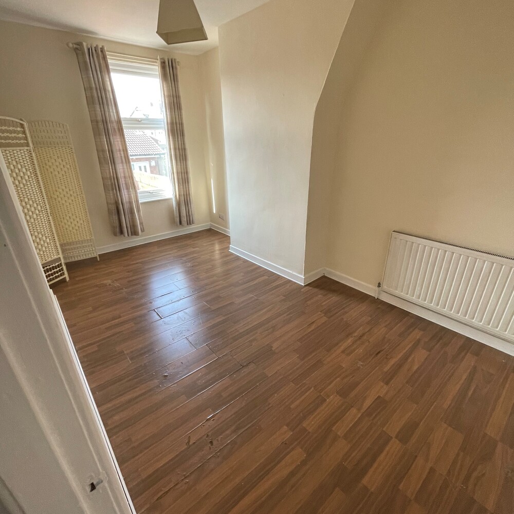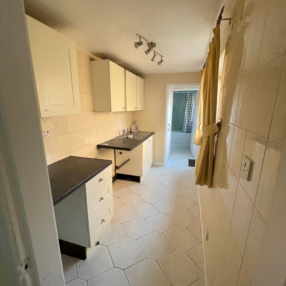 On the ground floor the property has a large bright living room with new grey laminate flooring , to the rear is a kitchen with white wall and base units and a free standing oven. There is a modern white bathroom with electric shower .
